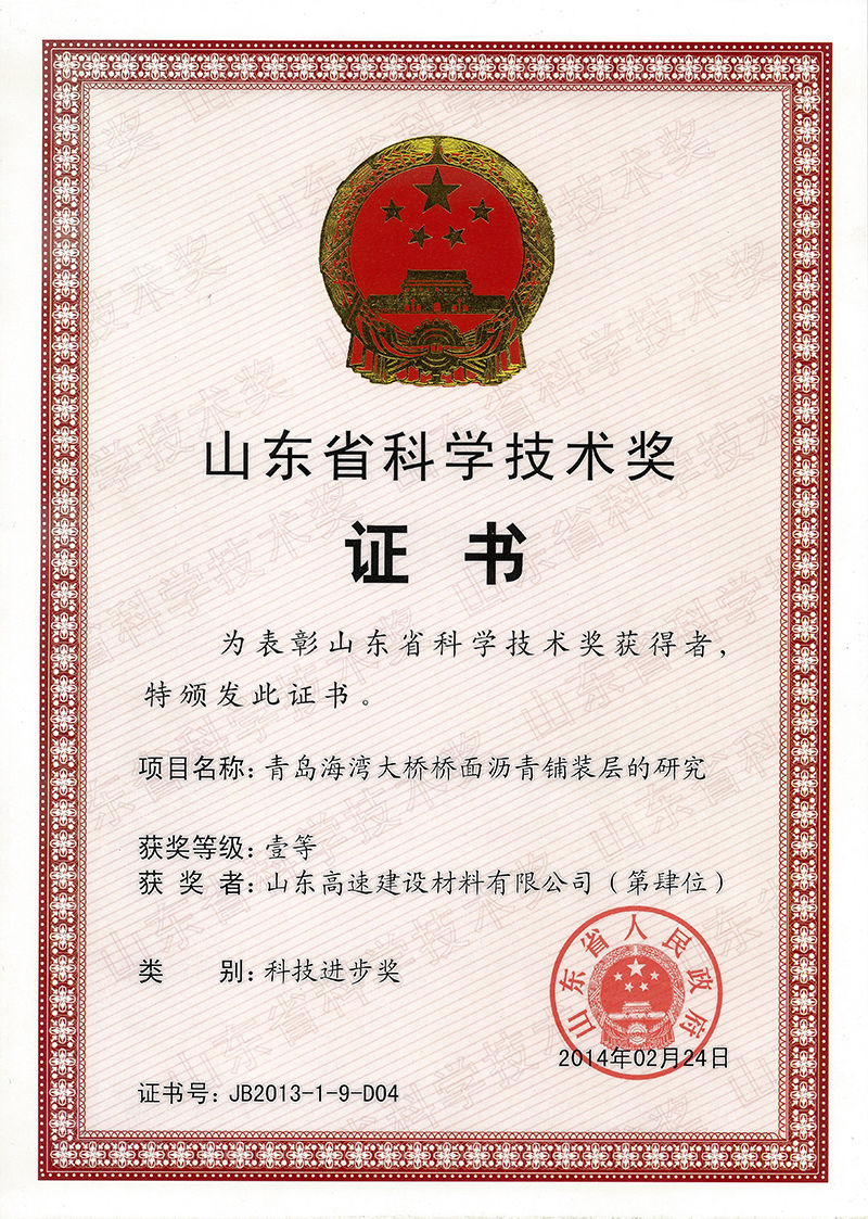 · 参与制定交通运输部岩沥青国家标准、山东省地方标准